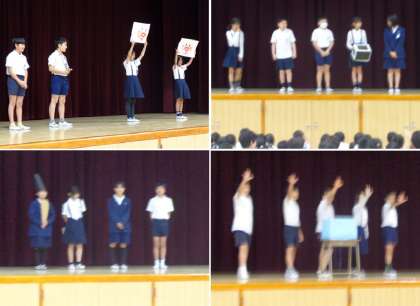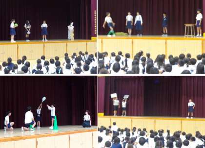 今朝の児童集会は、『新東フェスティバル』CM発表会でした。