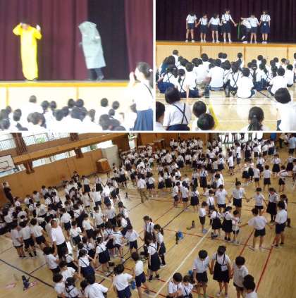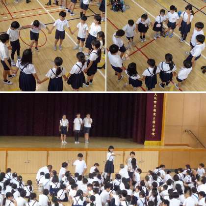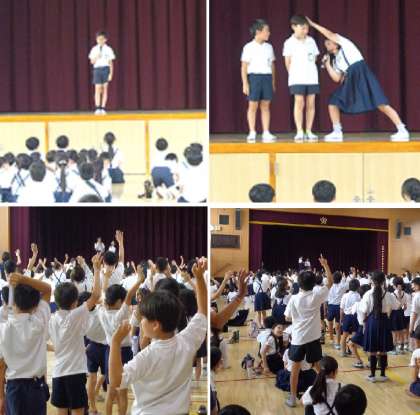 「全員で明るい学校を作ろう」という今年の児童会目標にむけて、計画委員会が企画した集会です。