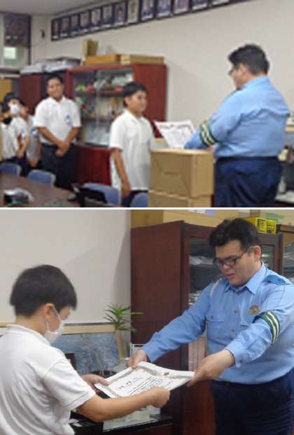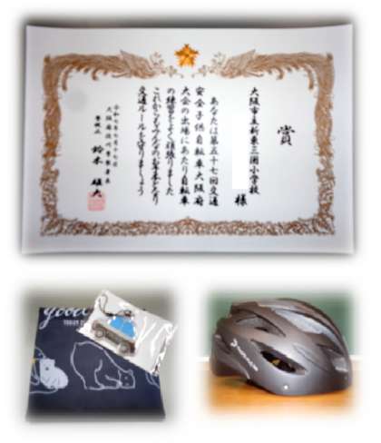 今朝、淀川警察の方が来校され、「自転車大会」の表彰がありました。