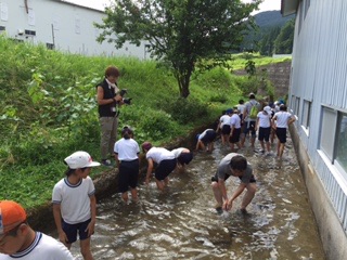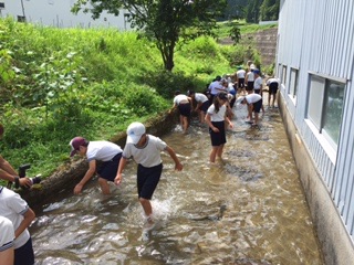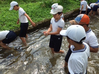 魚つかみです。みんな夢中です。しかし、魚に遊ばれている子どもたちです。