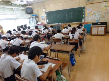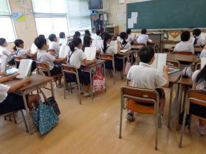1時間目、4年生は国語の時間で音読と、漢字や文章を書くことの学習をしていました。みんな、良い姿勢で集中しながら取り組んでいます。学習の基本は言語力であることは言うまでもないことですが、しっかり読む、しっかり書くことを身に付けることは、一生の宝となっていきます。