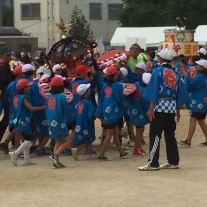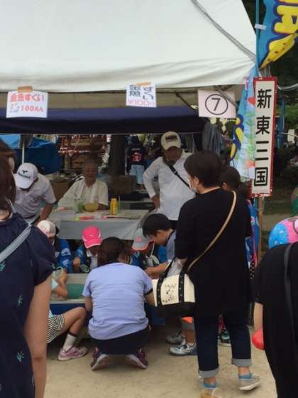 素晴らしい晴天の下、区民まつりが開催されました。新東三国地域のブースの金魚すくい、ヨーヨーすくいも大人気でした。本校の子どもたちは楽しそうに各ブースの出し物に興じたり、子どもみこしパレードで元気よく活動しました!