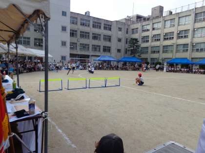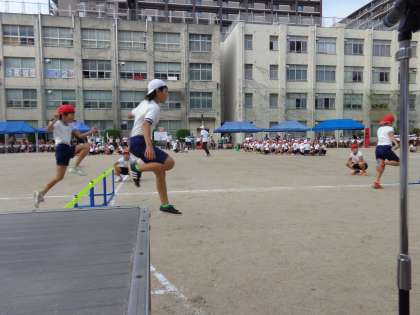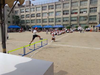 スタートは5年生の個人競争(のを超え、山を越え)でした。素晴らしい跳躍力!