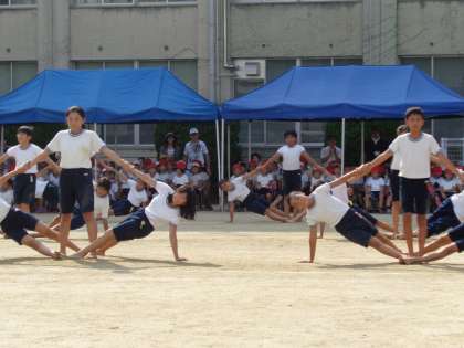 5・6年生は辛さや痛みを乗り越えて、見事、組み立て体操を完成させました!