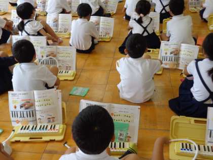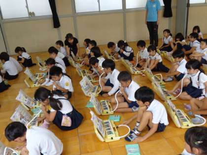 1年生が熱心に、けんばんハーンモニカの練習をしていました。けんばんハーモニカは楽器演奏の基礎を学ぶことができる素晴らしい楽器です。みんな、どんどん上手になって、未来のベルリンフィル楽団の一員が出てくる・・・こともあり得ます!