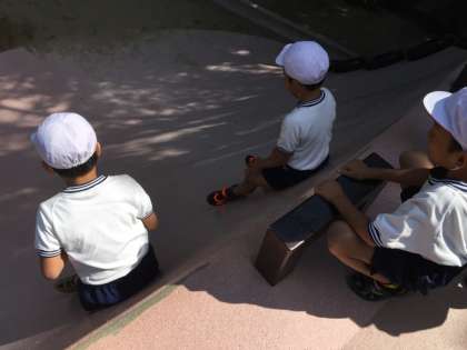 10月12日(火)に1・2年生が茨木市の西川原公園へ遠足に行った後日のこと。保護者の方から「あの公園て、急なすべり台がありますよね。」と話してくださいました。そうです。この公園は、急な勾配のすべり台で有名だそうです。この日、たくさんの子供たちが列を作ってこのすべり台で遊びました。中には頂上まできて、下を見て「やっぱりやめる」と断念する子もいましたが、強者は10回以上も滑っていました。