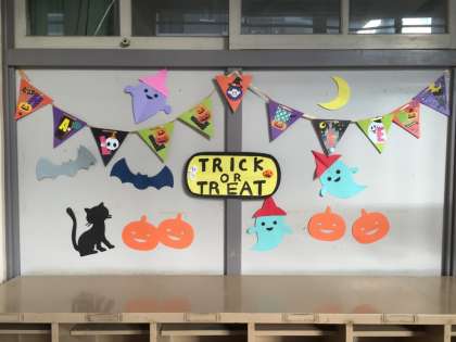 巷ではハロウィーンの飾りつけが見かけるようになりました。10月30日(日)には本校でも「ハロウィーンde防犯」というイベントを地域で行います。学校の中でもハロウィーンの飾りつけがあります。どこだと思いますか?