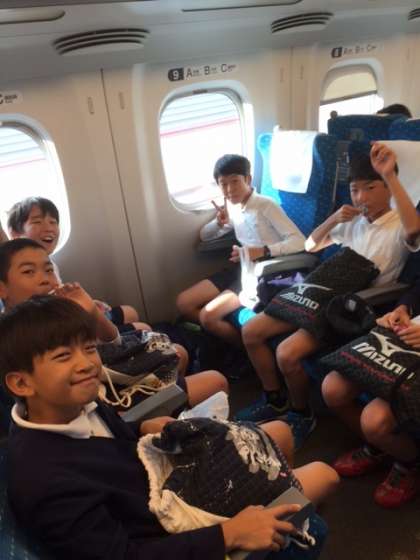 新幹線の中でもみんな、元気で楽しくしています。