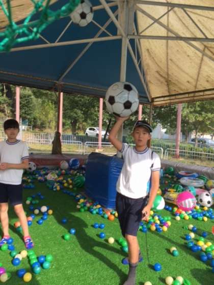 レクリエーションが始まりました。いろんな種目があります。みんな楽しそうです。