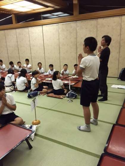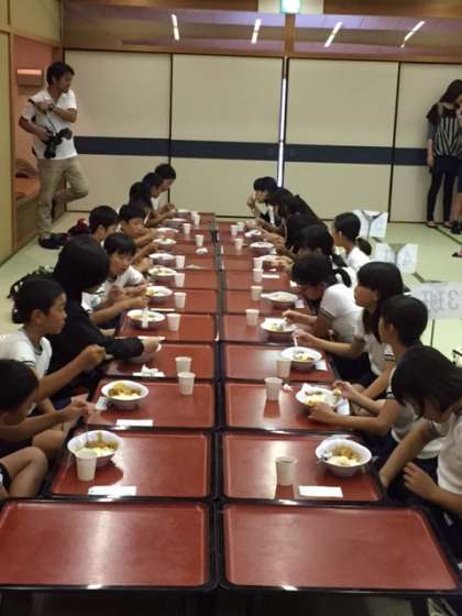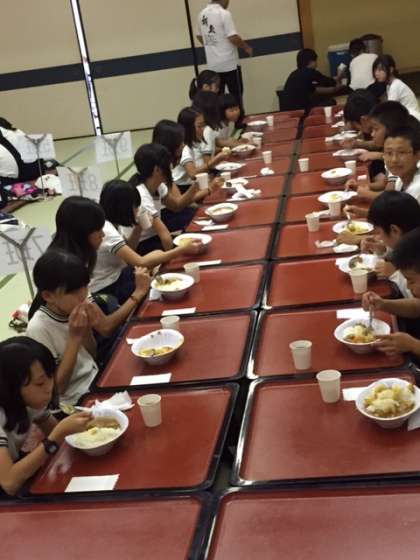昼食はカレーライス。元気よく、「いただきます!」みんなモリモリ食べています。