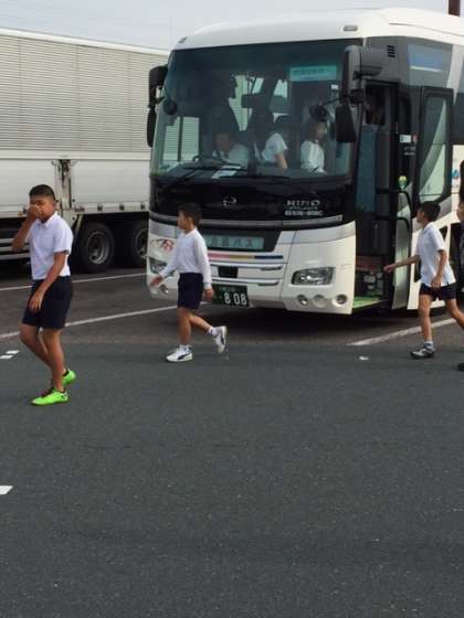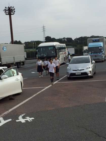立ち寄った吉備サービスエリアを出発しました。(午後3時10分)。現在、予定通りです。子どもたちは、眠そうですが、全員元気です。