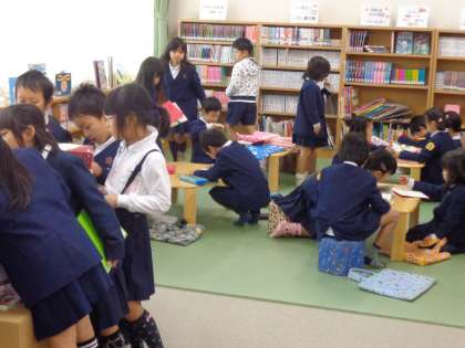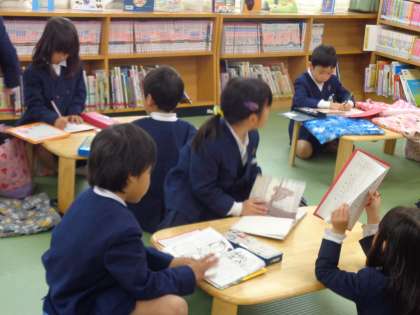 本日は1年生が熱心に図書館で読書をしていました。本を選んで読むだけでなく、読んだ本や借りた本をきっちりと記録用紙に記入して管理しています。自分たちでできることがどんどん増えている1年生です。