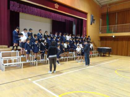 11月19日(土)の学習発表会に向けて、各学年は熱心に練習を積んでいます。写真は5年生が『源氏物語』などの古文に挑戦する練習風景です。なかなか、難しい古文を子ども達ががんばって暗唱していました。