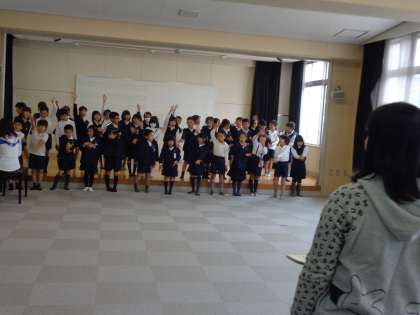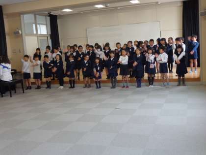 写真は2年生が学習発表会の練習をしている様子です。2年生は、大阪の昔話を大阪弁を使って演じてくれます。子ども達の動作は可愛いし、とてもためになる演出です!