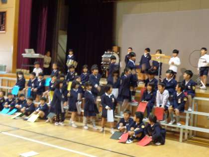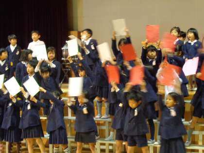 今日は1年生の学習発表会の練習を見学しました。なんと英語と手話を交えての演出です。内容は仲間について、そしてお互いの違いを認めることについてメッセージを送ってくれます。