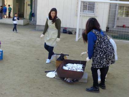PTA主催のやきいも大会が本校運動場で行われました。PTAの方々が早朝より、芋洗いや火入れなど入念な準備をしてくださり、わくわくするような催しになりました。