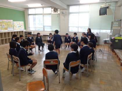 11月15日(火)の朝の会の時間は、集会委員によるフレンドタイムを行いました。雨でグランドが使えなかったので、教室での活動でした。集会委員が考えたゲームを、それぞれの教室で行いました。クイズを行うグループもあれば、フルーツバスケットや椅子取りゲームなど、みんなニコニコしながら楽しんでいました。さあ、楽しんだ後は、授業の始まりです!