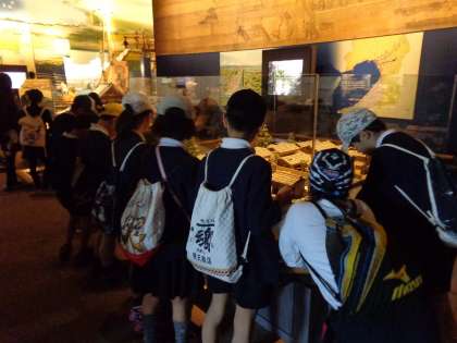 歴史博物館内では、係の方の指導を受けながら、明治時代の『かるた』に興じたり、さまざまな体験をすることができました。