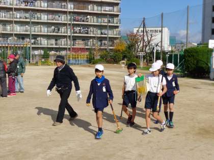 子ども達はプレーするたびに腕を上げていきました。そして、ホールインワンをする児童も4人でましたが、友和会より記念品をいただき、とても嬉しそうにしていました。子ども達にとっても、本当に楽しくて有意義な取り組みでした。