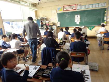5年生の習字の授業ですが、『美しい空』という字を一生懸命書いていました。新年、新学期すがすがしい気持ちが『美しい空』のイメージにぴったり合うのかもしれません。無心で習字に向かい、集中力もどんどんアップしていくようです。