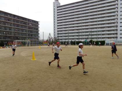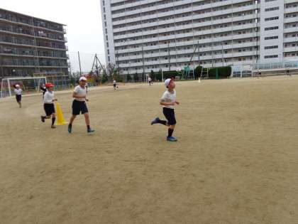 本日の5年生の体育の授業を見に行くと、子ども達が寒風の中をもくもくと走っていました。その距離は1500メートルという中学生並みの距離です。二人の担任が子ども達の様子をしっかりチェックしながら指示をおくっています。新東三国小学校の子ども達の頑張る気持ちの強さを垣間見た気がしました。