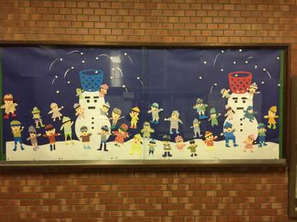 2月になりました。新しい月になり、玄関掲示も3年生が作品を作ってくれました。冬の一場面です。雪にも負けない子どもたちです。