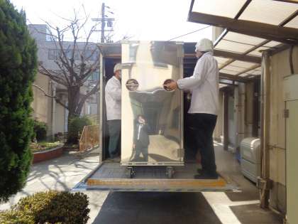本校の給食調理室で作った給食は東三国中学校へも運ばれて行きます。中学生分の大量の給食をコンテナで運ぶのはとても大変ですが、搬送の担当者が丁寧に給食の入ったコンテナをトラックに積み込んで、中学校へ運んでくださいます。給食を作る方々や搬送する方々の思いを中学生が美味しく食べてくれると嬉しいことです。