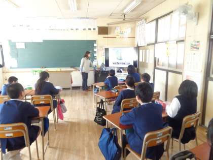 6年生は、5時間目に、東三国中学校の先生に英語の授業をしていただきました。子どもたちは、始めは緊張していましたが、時間が経ってくると、先生の質問に答えるようになってきました。