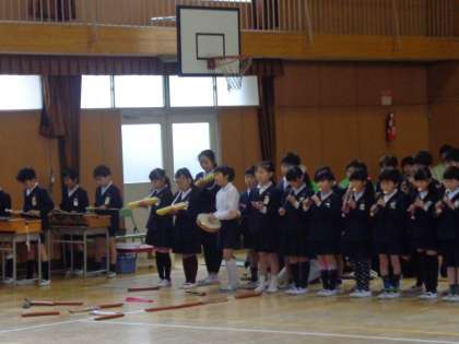 今日は卒業を控えた6年生の皆さんに感謝の気持ちを伝える、卒業を祝う会が開かれました。1〜5年生は今日の為に、歌や演奏の練習を行ってきました。