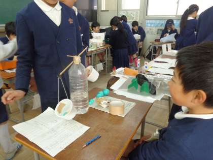 3年生は理科と図工のまとめでおもちゃを作りました。そのおもちゃを使って、「おもちゃ大会」を開き、2年生を招待して、一緒に遊びました。とても仲よく過ごした1時間でした。