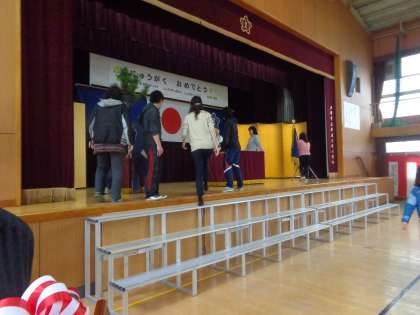 明日の入学式に向けて、前日準備を行いました。新入生の入る教室や会場(講堂)の設営と、新2年生が歓迎の歌と演技の練習など、全てに余念がありません。明日は天気の悪さが心配ですが、新入生たちのために、すばらしい入学式になってほしいと願うばかりです。