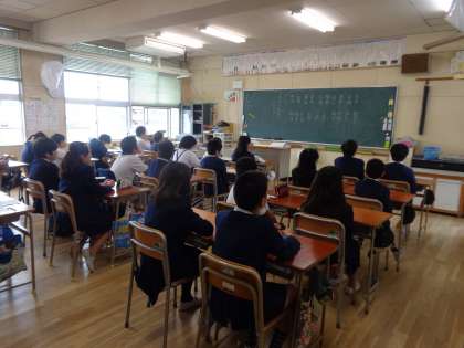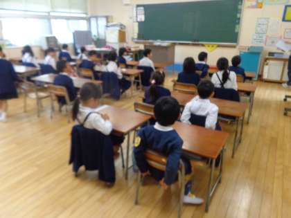 昨日の雨で運動場は使えない状態です。今日の朝会は放送で行いました。校長先生からは「道具をていねいに使いましょう」、生活指導の先生からは「学校の規則を守りましょう」と話をしていただきました。顔は見えませんでしたが、姿勢を正してスピーカーから流れる先生の声をしっかり聴けていました。