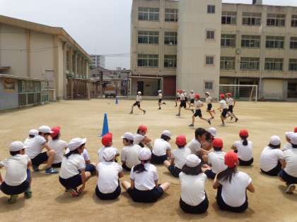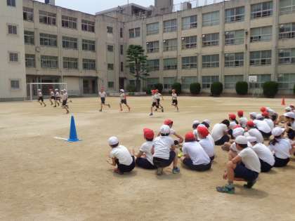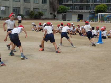 本日、4時間目の授業で6年生がシャトルランに取り組んでいました。20メートルの距離を、リズムに合わせて何回も何十回も折り返して走り続けます。とても辛い種目ですが、持久力をつけるために、学年の先生たちがしっかり安全管理をする中、子ども達は懸命に頑張っていました。この頑張り、精神力の強さも感じさます。