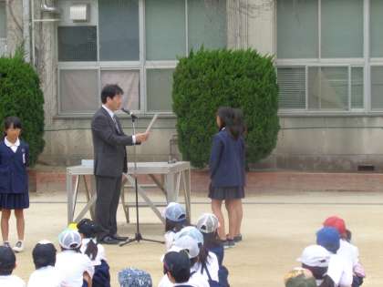 児童朝会で連合こども会が表彰を受けました(5月9日(火))