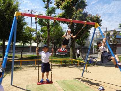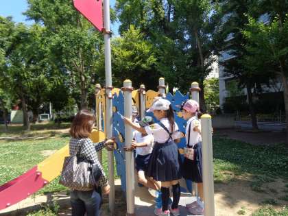 学習のあとは、安全に気をつけながら公園遊びを行いました。大きな滑り台や楽しいブランコなど、子ども達はまだまだ公園遊びが大好きです。今日の公園での学習と遊びはずっと思い出に残りそうです。