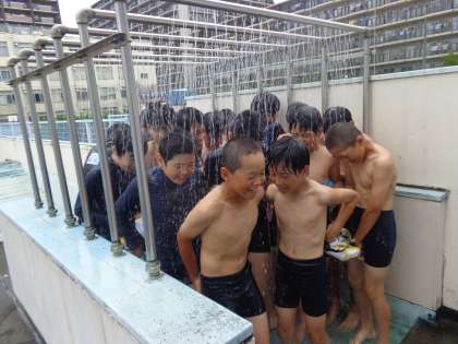 本日より、いよいよプール開きとなりました。プールに入った子ども達は、最近の暑さもあって、とても嬉しそうでした。泳ぎ方や、距離、速さなどについての練習はもちろん行いますが、忘れてならないのは、水による事故を防ぐための訓練でもあるということです。小学校時代の水泳の授業は命を守るための授業でもあると考えています。