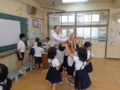 今日はC-NETの先生が来てくださいました。5時間目に2年1組で外国語(英語)の授業をしてくださいました。みんなで曜日の歌を歌って、その後、インタビューゲームでお友だちが何曜日のカードを持っているか尋ねて、ペアを作ったりグループを作ったりしました。残った5分で伝言ゲームをしました。とても盛り上がって、終わりの挨拶をした後、たくさんの子どもたちがC-NETの先生にハイタッチを求めていました。