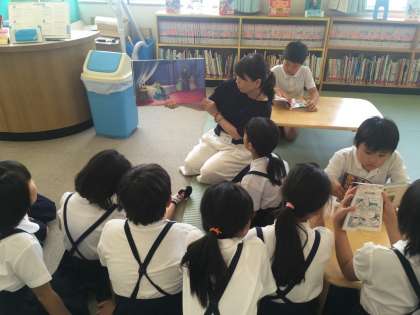 毎週木曜日、図書館補助員の方が来てくださっています。本の整理や貸し出し、子ども達が興味を持つ本の紹介、たくさんの事をしてくださっています。昨日は読み聞かせをしてくださいました。いろんな学年の子供たちが真剣に聞いています。