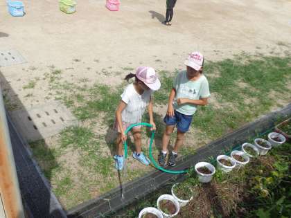 いよいよ本日から35日間の夏休みが始まりました。学校ではプール開放、図書館開放をしていて、子ども達はいつもよりリラックスした感じで楽しい時間を過ごしています。また、飼育栽培委員の子どもは熱心に植物の水やりなど、暑い中でも熱心にお仕事をしてくれています。