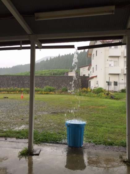 山間部の変わりやすい気候で、急な降雨です。子ども達は避難経路の確認などをしています。全員、体調は良好です。