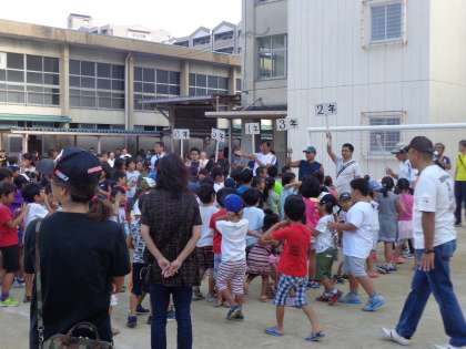 本日は地域、PTAの方々によって、校庭キャンプファイアーが行われています。本校の子ども達はもちろん、東三国中学校のジュニアリーダーの皆さん、保護者の皆様などが多く参加してくださっています。