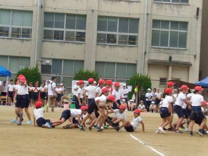 5年生の竹取物語(棒引き)です。力とチームワークを存分に出してがんばりました。転倒しても楽しい思い出です。