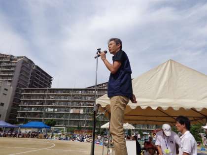 午後の部の最初に、PTA会長様よりごあいさつを頂きました。“大人も日常生活の中で工夫して、通勤に自転車を利用するなど、自分のできる範囲の運動を継続することが必要です”との有意義なお話でした。