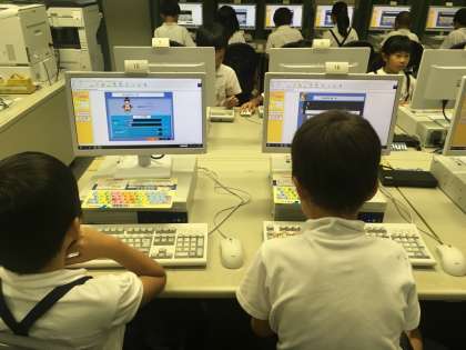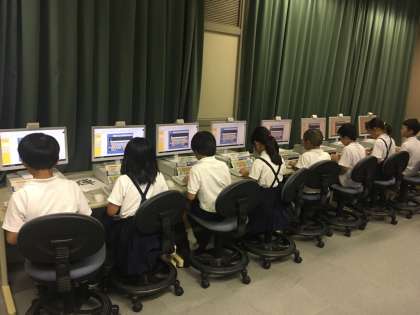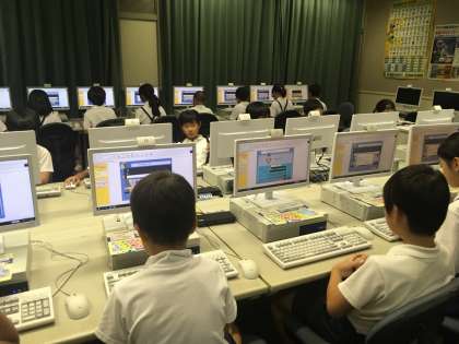 国語で学習したローマ字を、パソコン入力しています。キーボードレッスンのソフトで、速さと正確さを身につけています。
