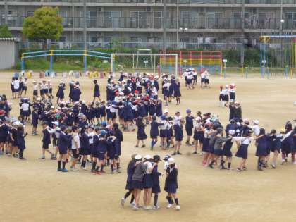 低学年も高学年もつながって・・・「最初はグー、じゃんけんポン!」