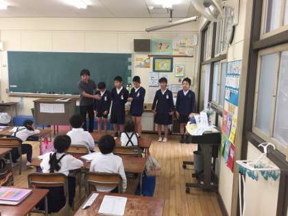 涼しい気候になりました。衣替えの季節です。6年生が1年生の教室に行き、冬服の指導をしてくれました。立派なお手本になっています。