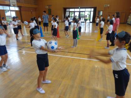 今日3年生は、サッカーを通じて視覚障がいの勉強を行いました。講師として、ブラインドサッカー女子日本代表の齋藤選手とファシリテーターの村上さんが来てくださいました。みんな目隠しをして、キャッチボールをしたり、ボールをけってみたり、始めは怖がっていましたが、講師の先生からご指導をいただき、だんだんボールに慣れてきました。サッカーのご指導をいただいた後、「目隠しをした友達に声をかけたりしながら、相手のことを考えて行動しました。みんなで助け合うことを、今日1日で終わらせないでください。」とお話ししていただきました。
