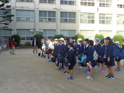 久しぶりに太陽が顔を出しました。とても気持ちのいい朝になりました。6年生は広島へ修学旅行へ行きます。児童が司会で出発式を行いました。校長先生のお話、一緒に行ってくださる先生方の紹介があり、児童代表が決意表明をしました。みんな笑顔でバスに乗り込みました。お家の皆様、朝早くからたくさんのお見送りありがとうございました。これからの活動内容は、ホームページに更新していきます。帰校予定は10月19日(木)17時半です。何かありましたら、ホームページと「はなまる連絡帳」でお知らせいたします。