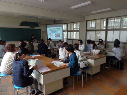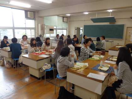 12時より、家庭科室にて給食試食会が行われました。本校の栄養教諭から大阪市の学校給食についての説明と「共食(きょうしょく)」についての話がありました。その後、給食の試食を行いました。今日のメニューは”ごはん、鶏肉のごまだれ焼き、ソーキ汁、もやしのしょうがじょうゆあえ、牛乳”でした。いつもお子様が食べている給食はいかがでしたか?