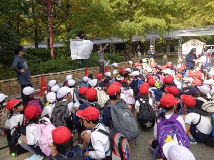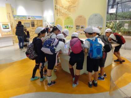 先週、雨が続き、台風もやって来ました。17日(火)に行く予定だった3・4年生の遠足は本日、行くことができました。長居公園に到着すると、先生の説明を受けて、オリエンテーリングがスタートしました。3・4年のたてわり班で、長居植物園内にある植物の質問に協力して答えていきました。その後、自然史博物館を見学して、帰校しました。曇りがちでしたが、時折見せるお日様に、子ども達はニコニコしていました。